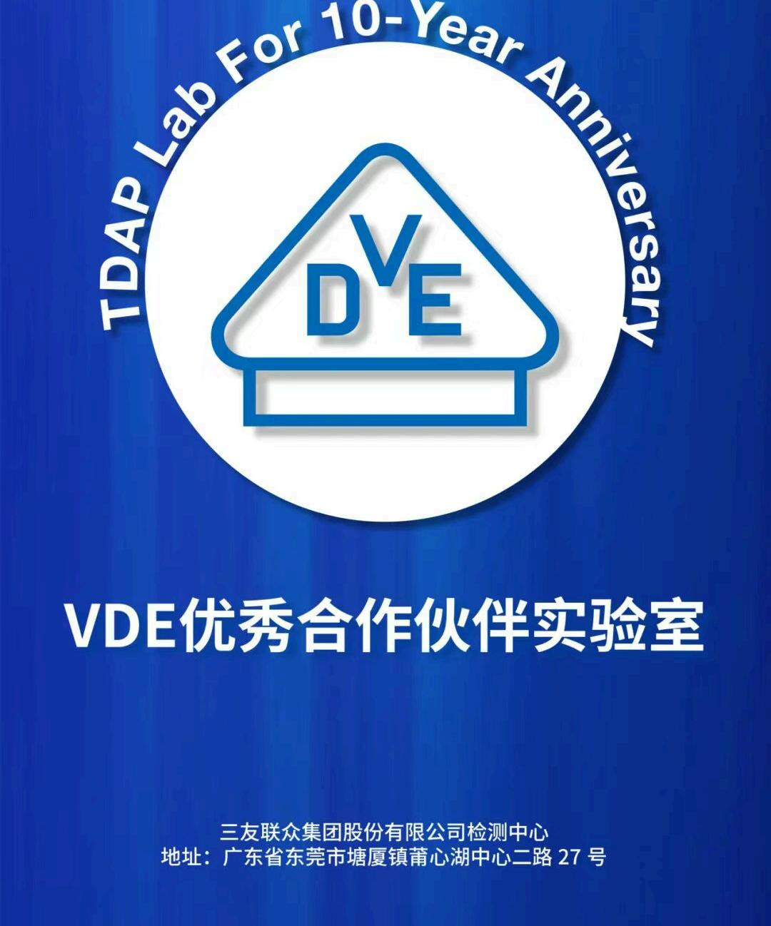 近日,全球领先的电气电子检测与认证机构VDE正式授予三友联众集团股份有限公司“优秀合作伙伴实验室”称号,并同步颁发“十周年TDAP数据认可实验室”证书。
